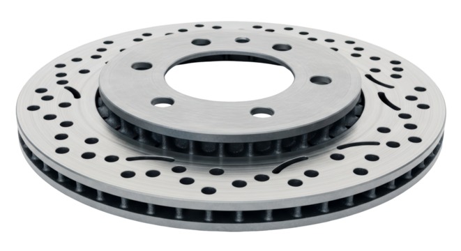 Red metallic gear with holes on transparent background