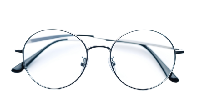 Modern silver eyeglasses with transparent background