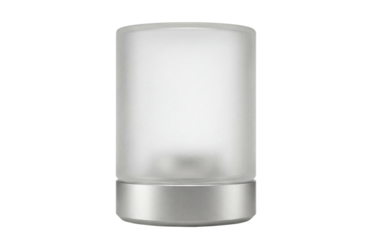 A classic glass salt shaker filled with white granules and a metallic cap, isolated on transparent background.