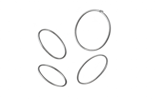 Four metallic oval rings isolated on a transparent background, shiny silver