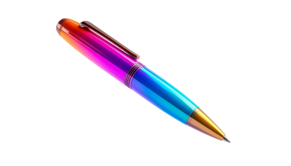 Gleaming, vibrant pen with a metallic finish, against a black background
