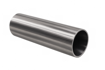 Metal industrial pipe with brushed surface, showcasing sleek engineering design against transparent backdrop