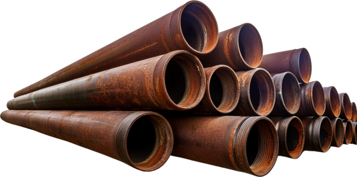 A neatly arranged stack of shiny steel metal pipes, evenly aligned and isolated on a white background, with a clean and sharp cutout, perfect for a PNG file format