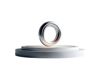 Sleek metallic ring displayed on a minimalist pedestal, exuding modern elegance and luxury.
