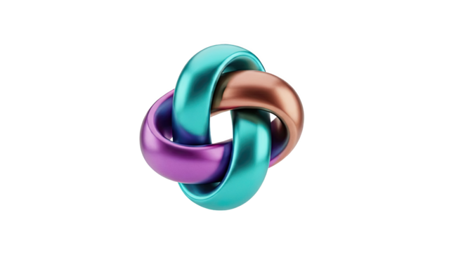 Metallic silver sculpture with rings metallic sculpture isolated on a transparent background