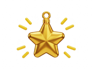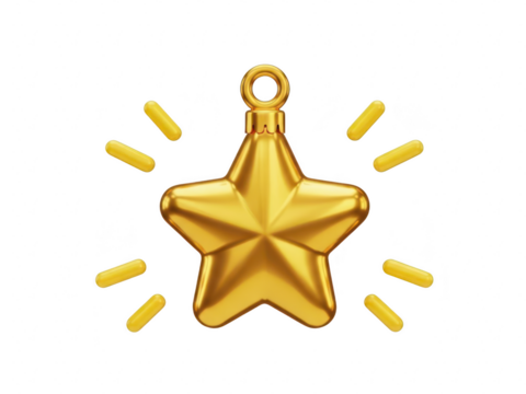 A shiny gold star ornament with sparkles isolated on transparent background