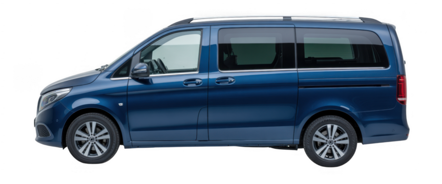 Blue minivan vehicle isolated on a transparent background
