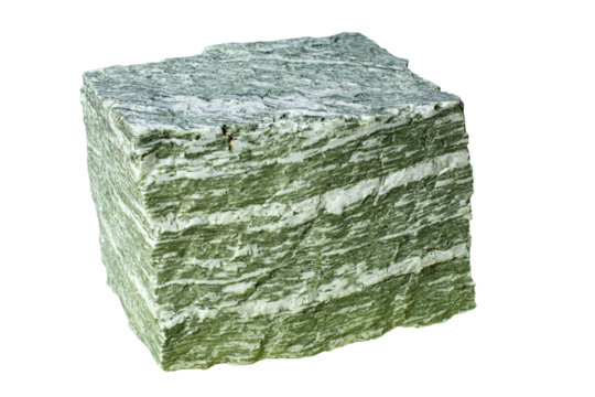 Single piece of silvery layered metamorphic schist rock isolated on transparent background