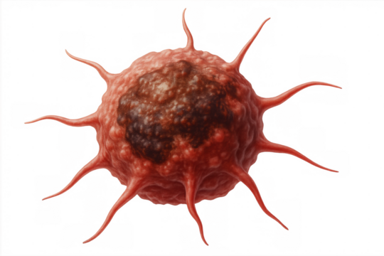 a menacing cancer cell alarming red hue ominous isolated on white background, png, ai generated.