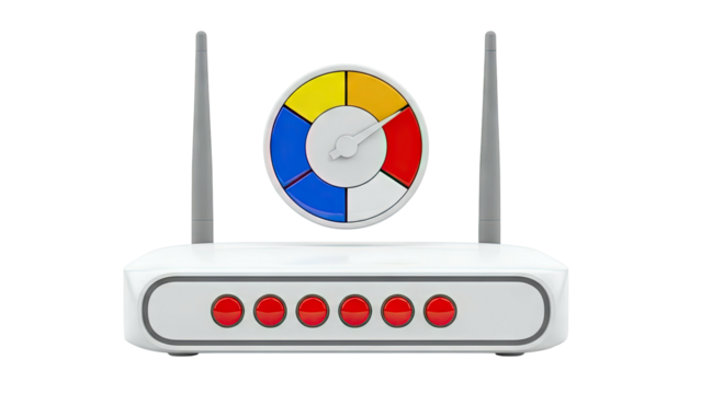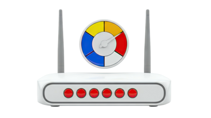 Colorful speedometer gauge isolated PNG on transparent background, performance measurement tool for dashboard and infographic design