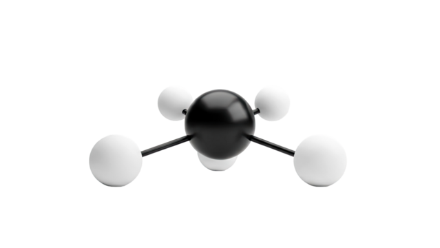 Methane Molecule Outlined Scientific Diagram with Bonds on Black