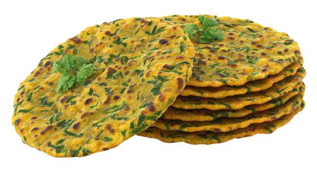 Flat Gujarati methi thepla bread, Indian cultural snack in 3D - isolated on transparent background