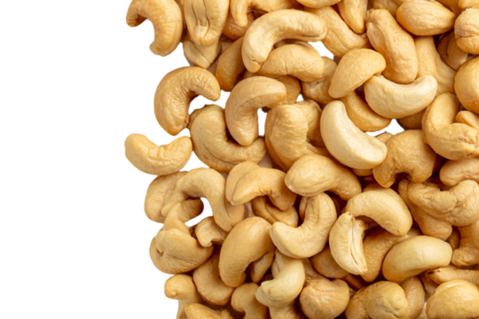 Pile of Raw Cashew Nuts on White Background