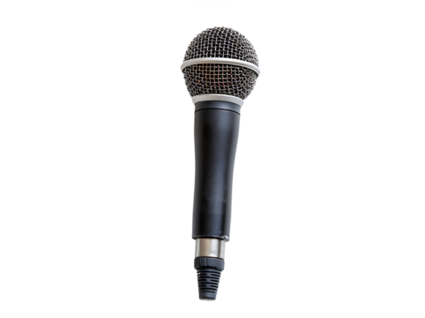 A shiny silver retro microphone isolated on transparent background, ready for a vintage recording session