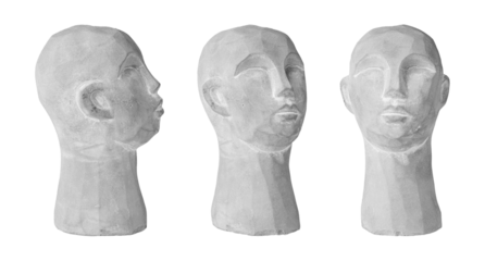 set plaster head gray for decoration on an isolated white background close-up