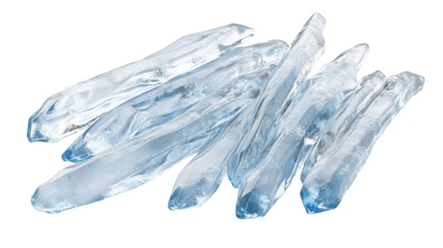 Close up of intricate ice crystals on a white background showcasing natural winter beauty isolated on a white background.