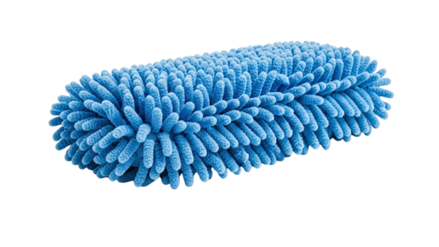 Detailed blue microfiber cleaning duster, isolated on transparent background with studio lighting, showcasing vibrant blue color and textured surface
