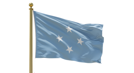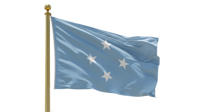 Micronesia flag waving on pole isolated on white background, symbol of Federated States of Micronesia, perfect for geography and travel projects