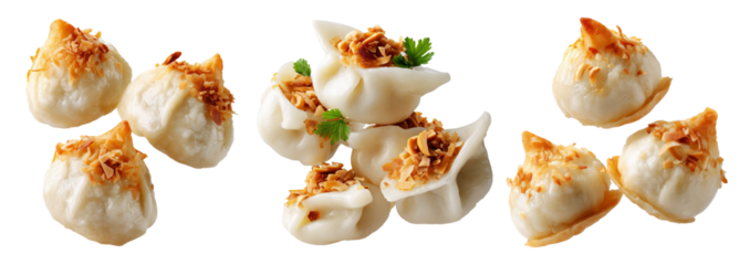 Banana coconut rice balls topped with toasted almonds, isolated on white background, concept of Micronesia Asian dessert