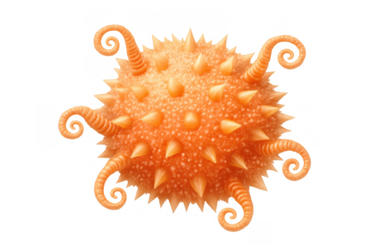 Microorganism or microbe virus concept with spikes and tentacles on a transparent background
