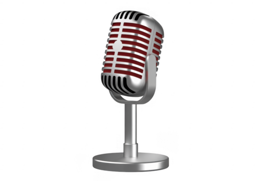 Vintage microphone on stand silver microphone red grill isolated on a transparent background