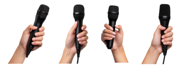 Close up Reporter Hand, Hand Holding Microphone for speech or interview on Isolate on white background PNG File.