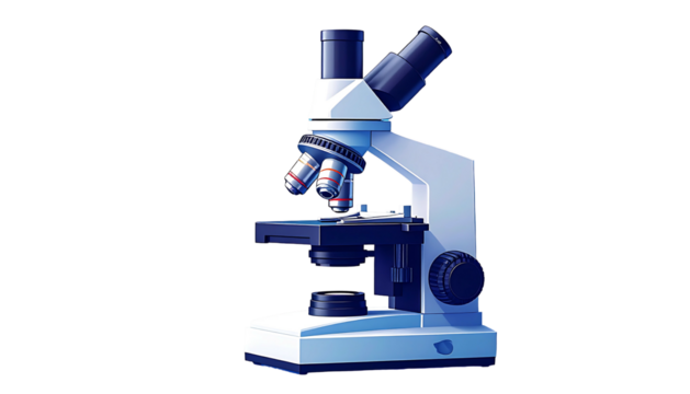 Microscope objective lenses with gold and silver detail isolated on a transparent background