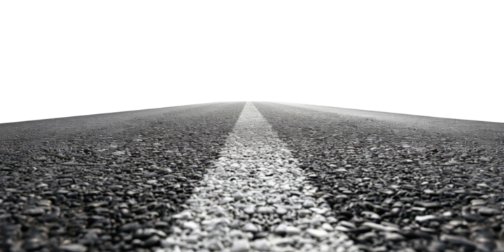asphalt road with mid line isolated on white or transparent png