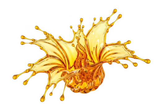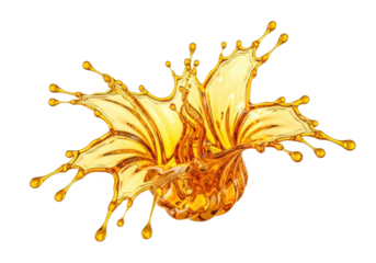 Dynamic Golden Oil Splash in Midair isolated on a transparent background