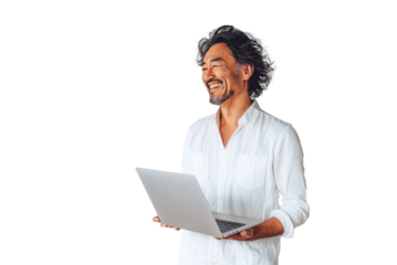 Smiling mature caucasian couple embracing in casual attire on transparent background