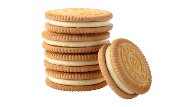 stack of cookies , middle cream cookies stack isolated on transparent background