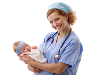 Confident female doctor smiling with stethoscope in clean transparent background. professional healthcare worker, medical personnel.