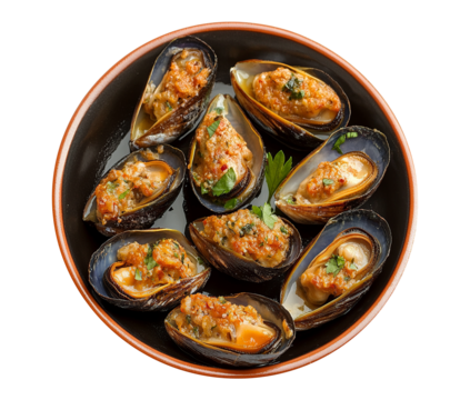 Savory Stuffed Mussel Delicacy, isolated on a transparent or white background