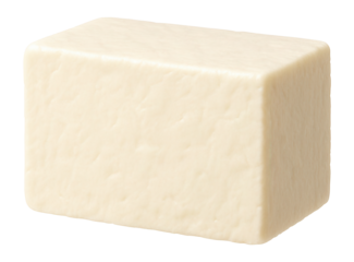 Block of cheese with holes, yellow color, and textured surface, isolated on transparent background.
