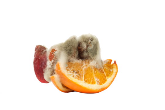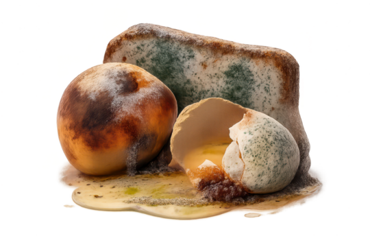 Rotten food composition with transparent background for educational use.