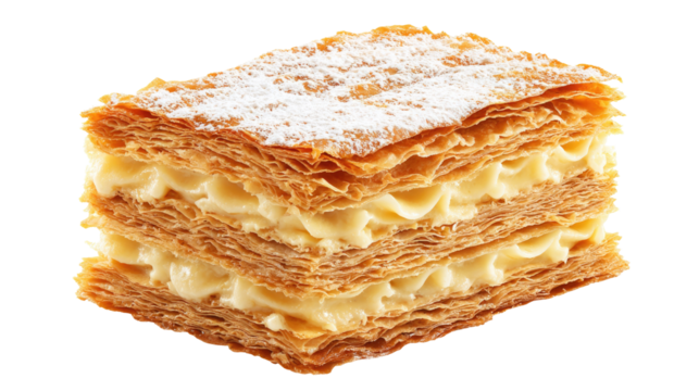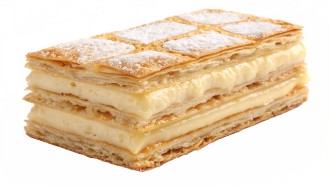 Delicious mille-feuille cake isolated on transparent background, pastry cream