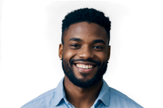 Portrait of a Young African American Man with a Charming Smile, Transparent PNG