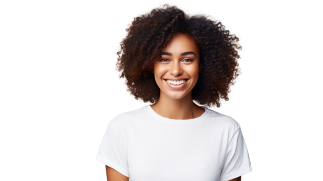 smiling and cheerful young black woman  Isolated from the white background.