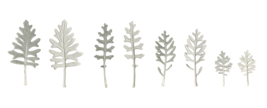 Silver Dusty Miller Leaves, Isolated on Transparent Background