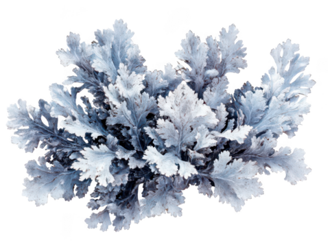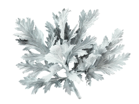 Dusty Miller leaves with silver foliage and delicate texture isolated on transparent background