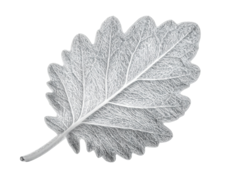 Single Dusty Miller Leaf, Front-Facing View, Isolated on Transparent Background
