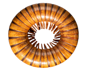 Close up of a brown millipede curled in a spiral shape isolated on transparent background