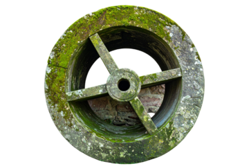 Vintage Stone Mill Wheel with Weathered Surface, isolated on transparent background