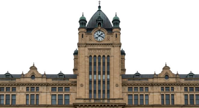 Isolated Milwaukee City Hall Building with Clock Tower and Ornate Architecture