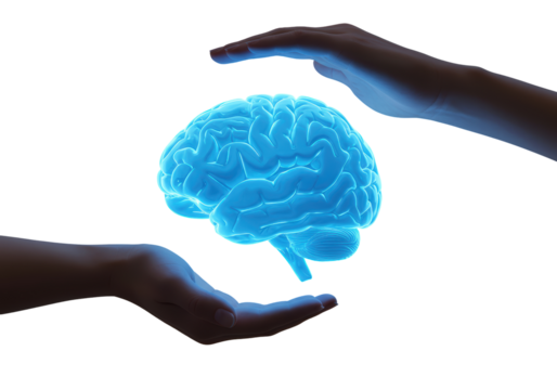 Brain in Hand: A close-up shot of a hand delicately cradling a detailed brain model, symbolizing intellect, thought, and the power of the human mind.