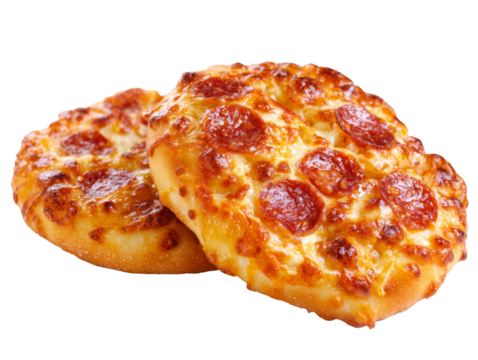 Golden baked cheese topped mini pizzas isolated on a transparent background
