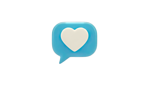 3D Heart in a Speech Bubble on White Background