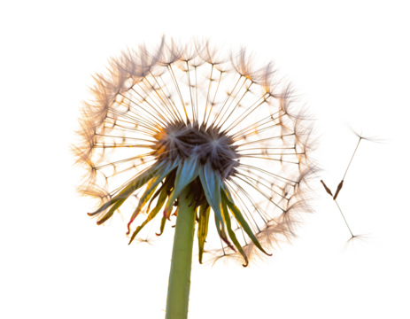 Dandelion Seed Head with Flying Seeds Isolated on White background PNG