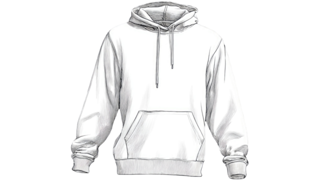 Line drawing of hooded sweatshirt minimal fashion garment sketch clothing outline illustration casual wear isolated on white background