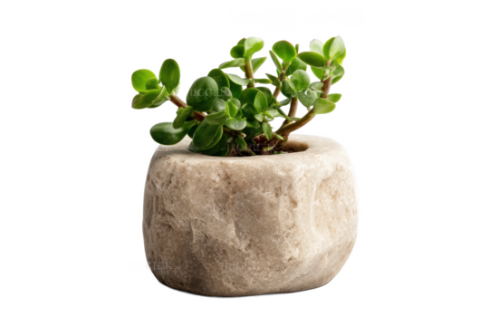 Serene Succulent: A Touch of Green Elegance in a Natural Stone Planter, Bringing a Calming and Organic Element to Modern Spaces.